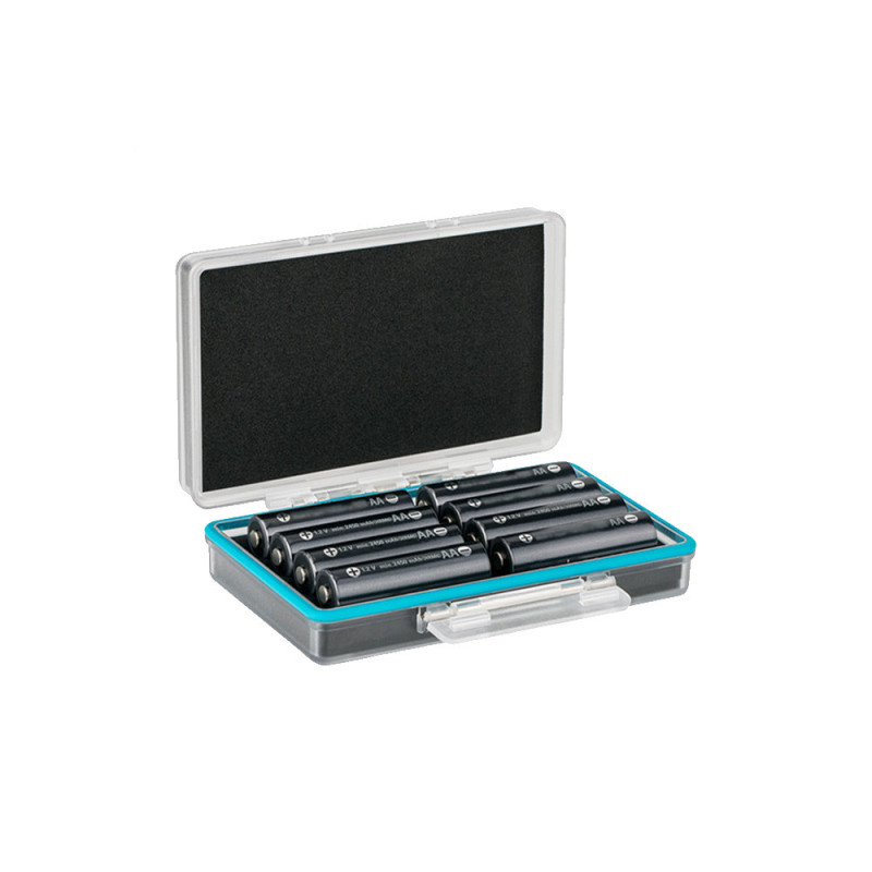 BC 3X8AA baterijų dėžutė talpina iki aštuonių AA arba 14500 baterijų ir pagaminta iš patvaraus PC medžiagos. Ji apsaugo baterijas nuo dulkių, drėgmės ir smūgių su putų pagalve ir turi ergonominę užrakinimo sistemą lengvam prieinamumui.