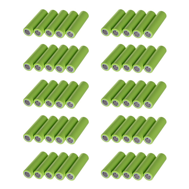 Baterijos dydis: 18650, tipas: Įkraunama ličio jonų, spalva: Šviesiai žalia, įtrauktų baterijų skaičius: 50, talpa: 2900mAh, įtampa: 3.7V, technologija: Ličio jonų (Li-Ion), maksimalus įkrovimo ciklų skaičius: 1000.