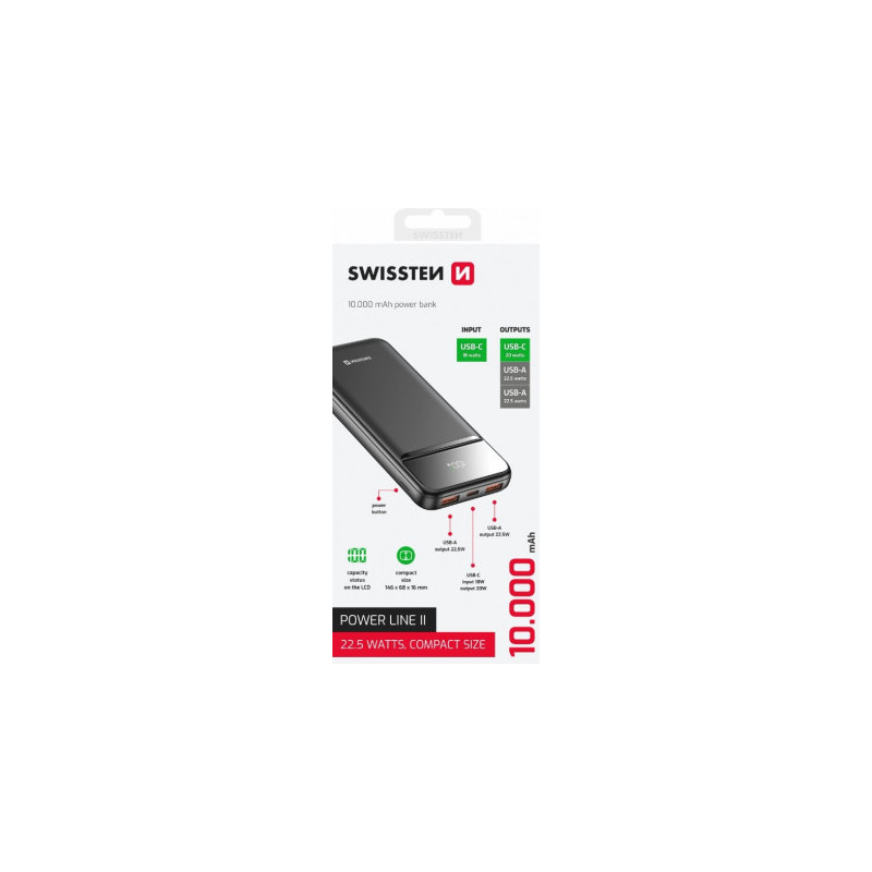 „Swissten Power Line II“ išorinė baterija, 10000 mAh