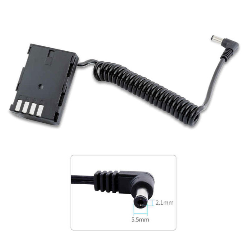 BLE 19E imitacinė baterija suteikia energiją Panasonic GH5 kamerai naudojant DC išėjimą iš FeelWorld monitorių. Ji turi spyruoklinį spiralės kabelį, kuris išsiplečia nuo 25 cm iki 1 metro, užtikrinant lanksčią jungtį.