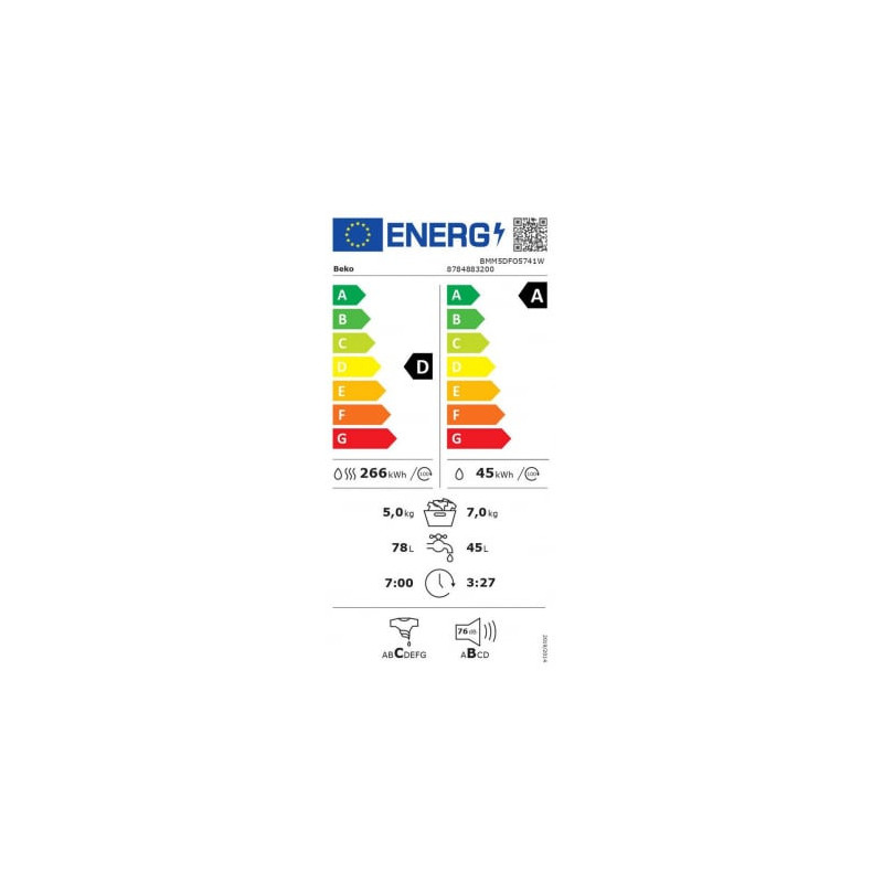 | Trokšņa līmenis (mazgāšanas laikā / izgriešanas laikā) | 76 |