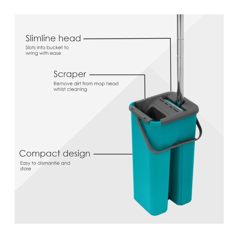 Valykite įvairius kietus grindų paviršius su šiuo „Beldray“ dvipusio plokščio šluostės ir kibiro rinkiniu, pagamintu iš tvirtų ir patvarių medžiagų.