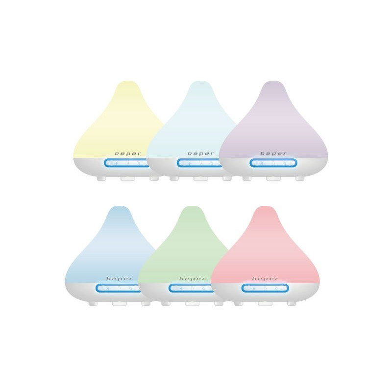 Minimalistinės formos „Essence“ difuzorius su ultragarsiniu purkštuvu ir 7 spalvų LED šviesa, nuolat keičiančia chromatinę šviesą. Su mygtuku šaltų garų intensyvumui pasirinkti ir mygtuku vienos spalvos pasirinkimui. Automatinis išsijungimas pritrūkus vandens. Bako talpa 140 ml. Pridedamas adapteris.