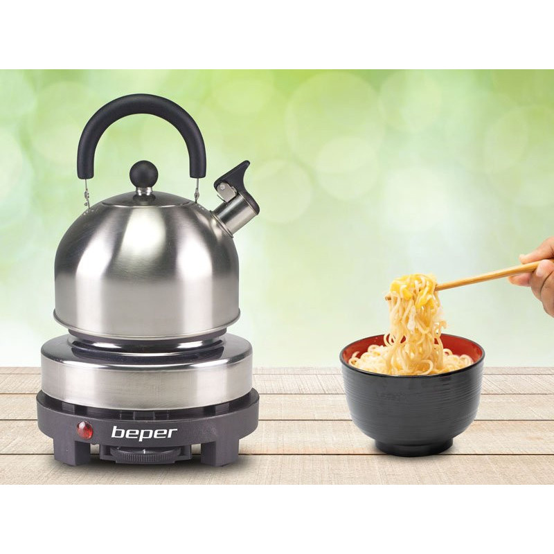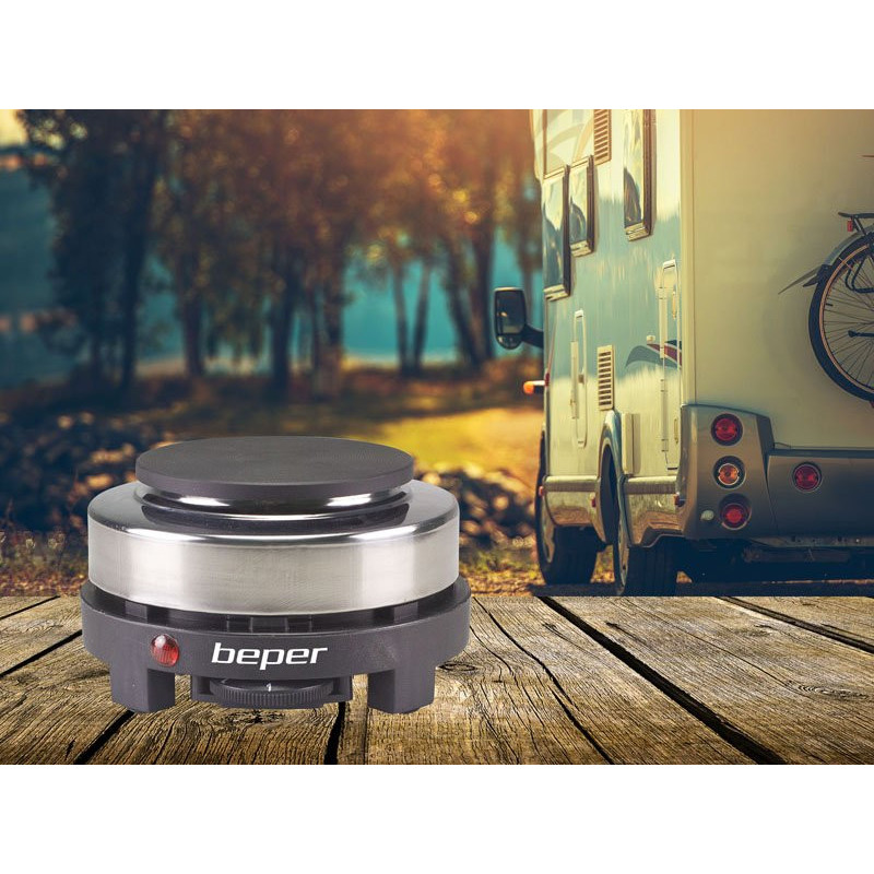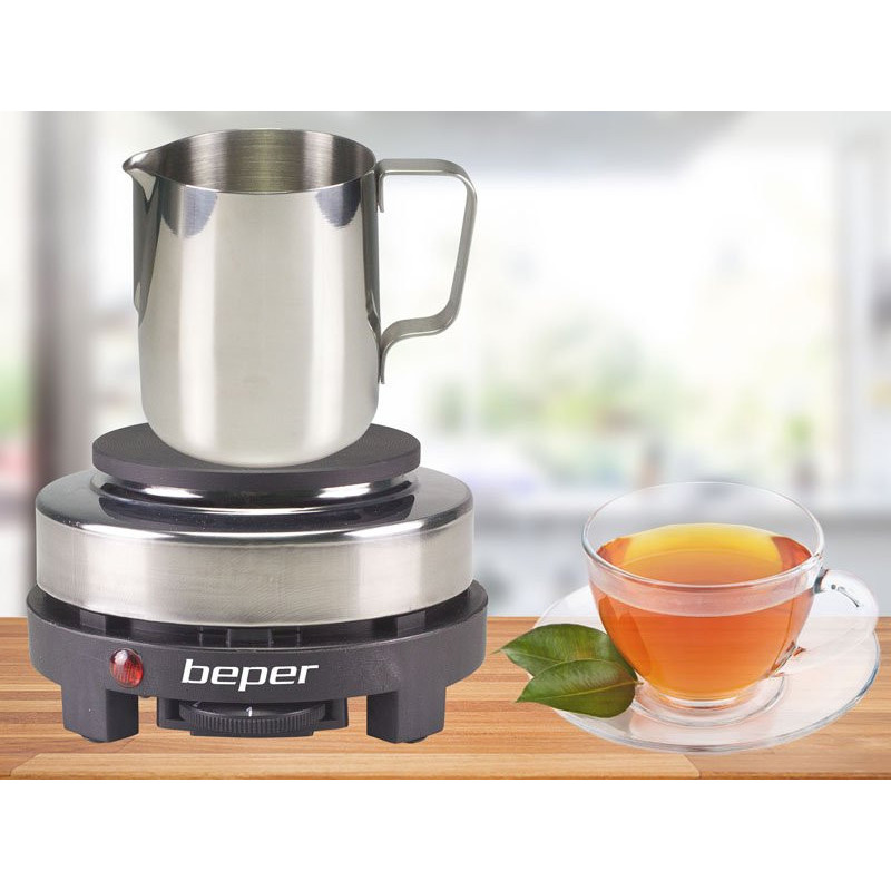 Elektrinė viryklė su plieniniu ir plastikiniu korpusu, ketaus plokšte, kurios skersmuo 10 cm.