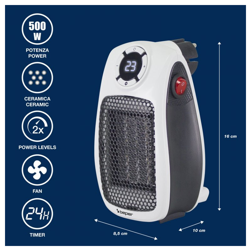 Kompaktiškas ir vietą taupantis keraminis ventiliatorinis šildytuvas puikiai tinka greitai apšildyti tokias patalpas kaip vonios kambariai, biurai ar miegamieji.
