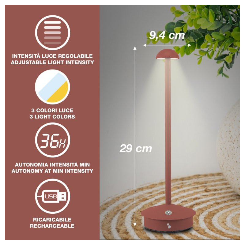Rechargeable via the included USB cable, it is the perfect solution for those seeking functionality, freedom of movement and a personalised atmosphere.