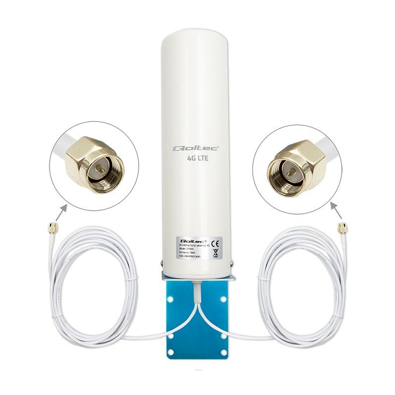 Qoltec 57044 yra 4G LTE dviejų antenų su 5 dBi stiprumo lygiu, veikianti 600-2700 MHz dažnių diapazone. Ji turi patvarią korpusą, pagamintą iš vario, plieno ir plastiko, o impedansas yra 50 Ω su maksimaliu galingumu 50 W.