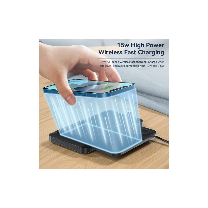 Bevielis įkroviklis Essager 'JG 4in1' juodas 15W (iPhone / Apple Watch / Airpods / Pencil)