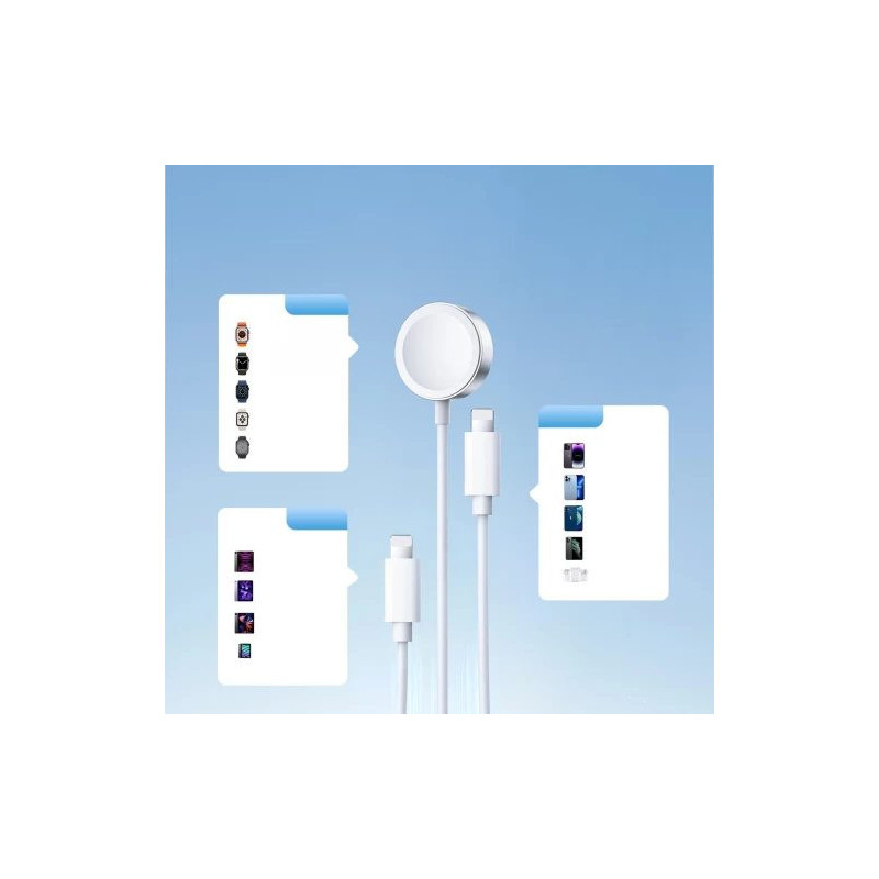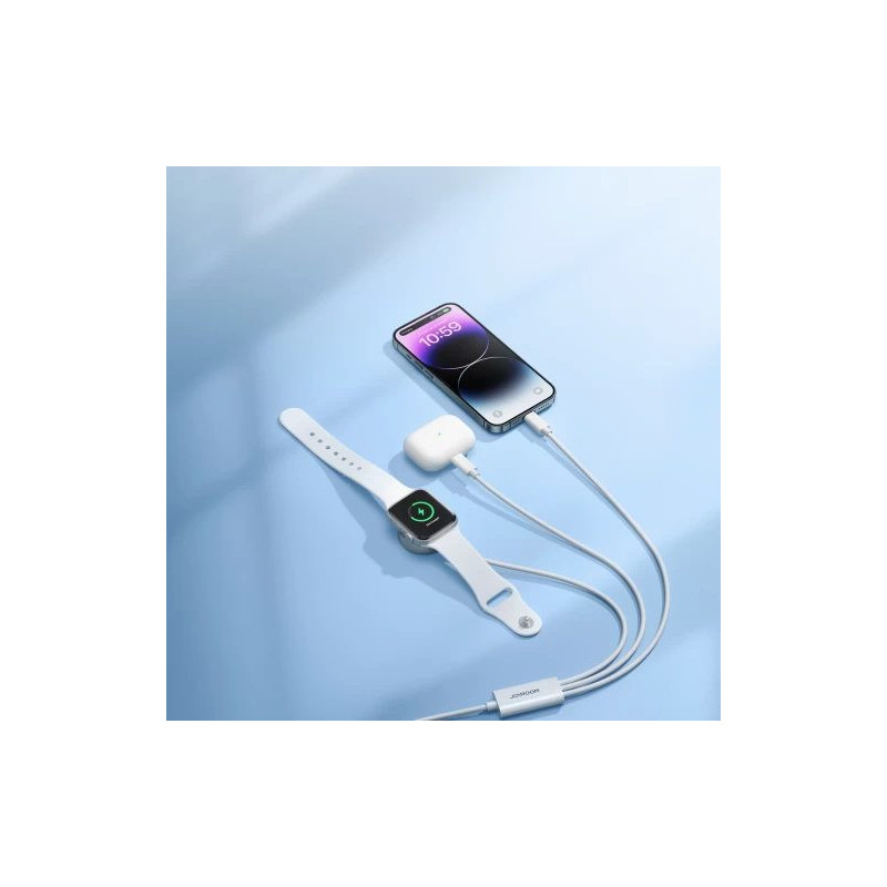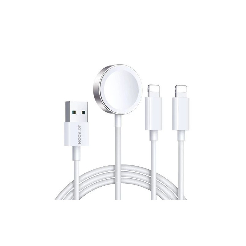 Bevielis įkroviklis Joyroom 'S-IW007' baltas 120cm su prailginimu 3in1 (skirtas Apple Watch)
