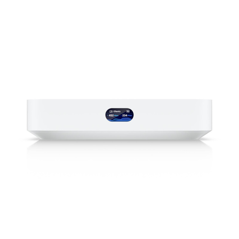 Kompaktiškas 2,5 G debesies šliuzas su daugiau nei 30 „UniFi“ įrenginių / daugiau nei 300 klientų palaikymu, 1,5 Gbps IPS maršrutizavimu ir pasirenkama NVR saugykla.