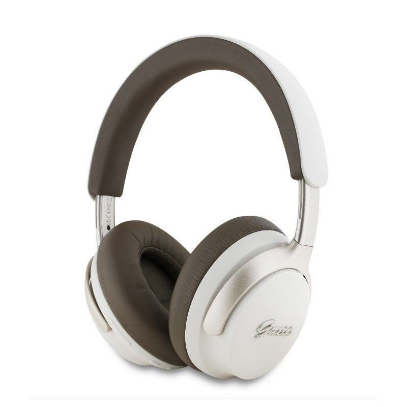 Belaidės ausinės Guess PU odos Script Logo ANC/ENC Wireless Headphones smėlio spalvos