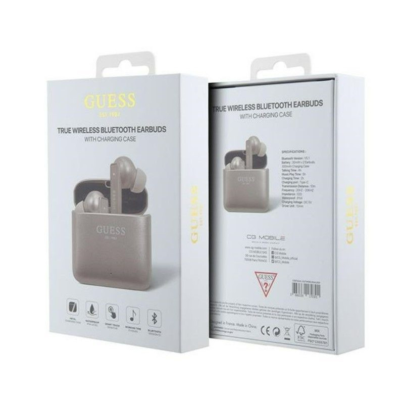 Belaidės ausinės „Guess“ spausdintu logotipu „Bluetooth TWS“ rožinės