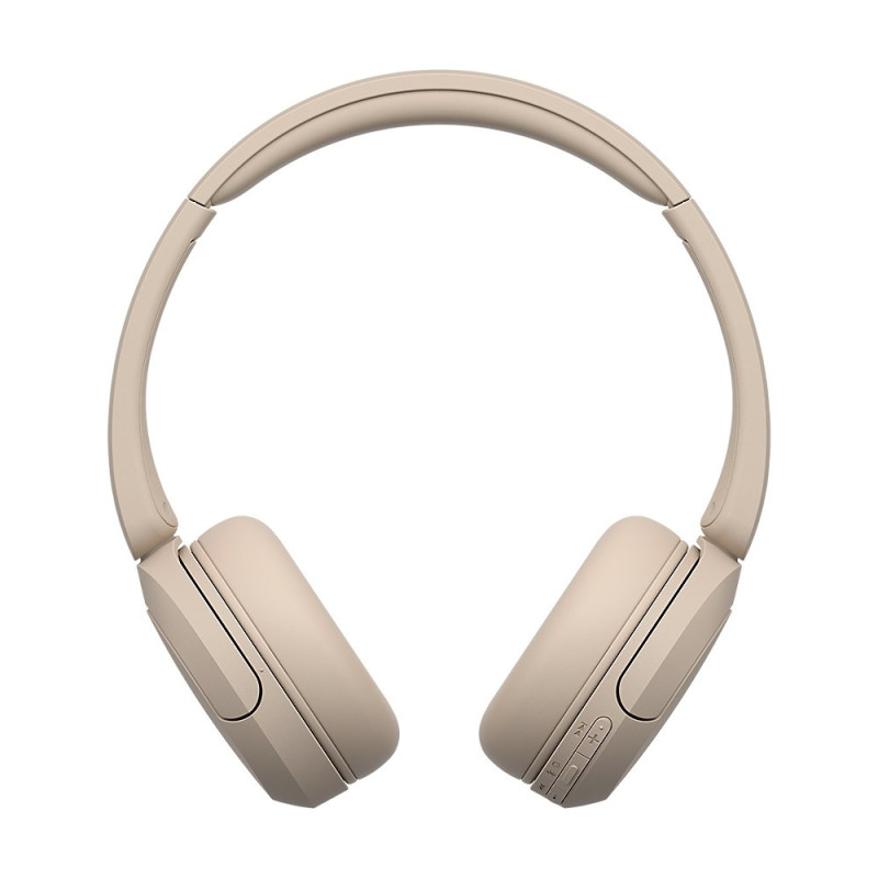 „Sony WH-CH520“ belaidės ausinės su galvos juosta, skambučiams / muzikai, USB C tipo „Bluetooth“ įkrovimo stovas, kreminės spalvos