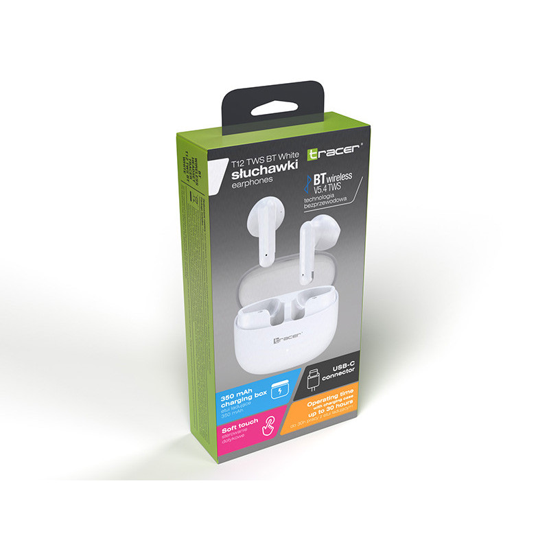 Ausinės „Tracer T12 TWS“ – tai patogaus į ausį įdedamo dizaino, modernios „Bluetooth“ technologijos ir ilgo veikimo derinys. Idealus pasirinkimas ieškantiems lengvų, patogių ausinių kasdieniam naudojimui.