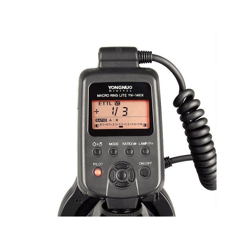 Yongnuo YN-14EX yra makro blykstė, skirta Canon DSLR fotoaparatams, turinti TTL ir rankinį režimus bei 14 vadovavimo numerį. Komplekte yra keturi objektyvo adapteriai, integruotas kompiuterio prievadas, veikia su keturiomis AA baterijomis.