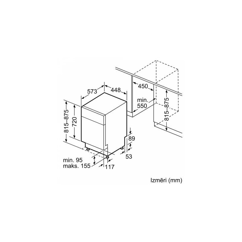 WDA07 matmenys (aukštis x plotis x gylis)81,5–87,5 x 44,8 x 57,3