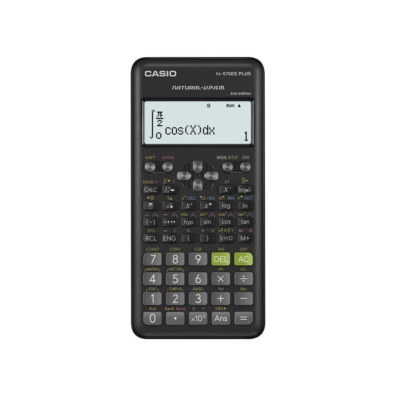 CASIO FX-570ESPLUS-2 mokslinis skaičiuotuvas turi 417 funkcijų ir 12 skaitmenų taškinį ekraną. Jis turi 42 mygtukus, veikia su viena AAA baterija, kurios tarnavimo laikas yra dveji metai, ir yra su apsauginiu dėklu.