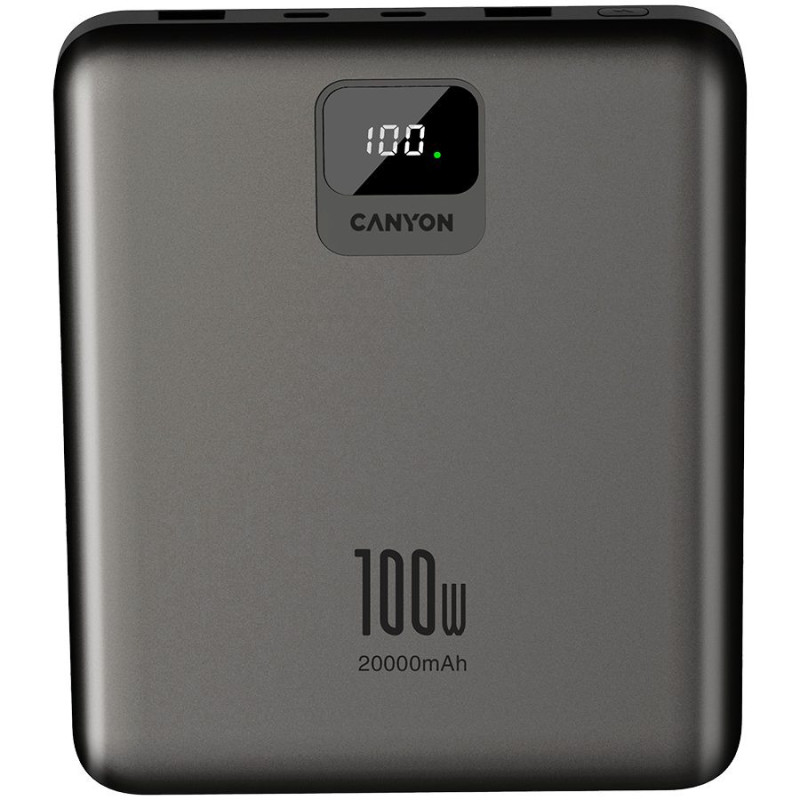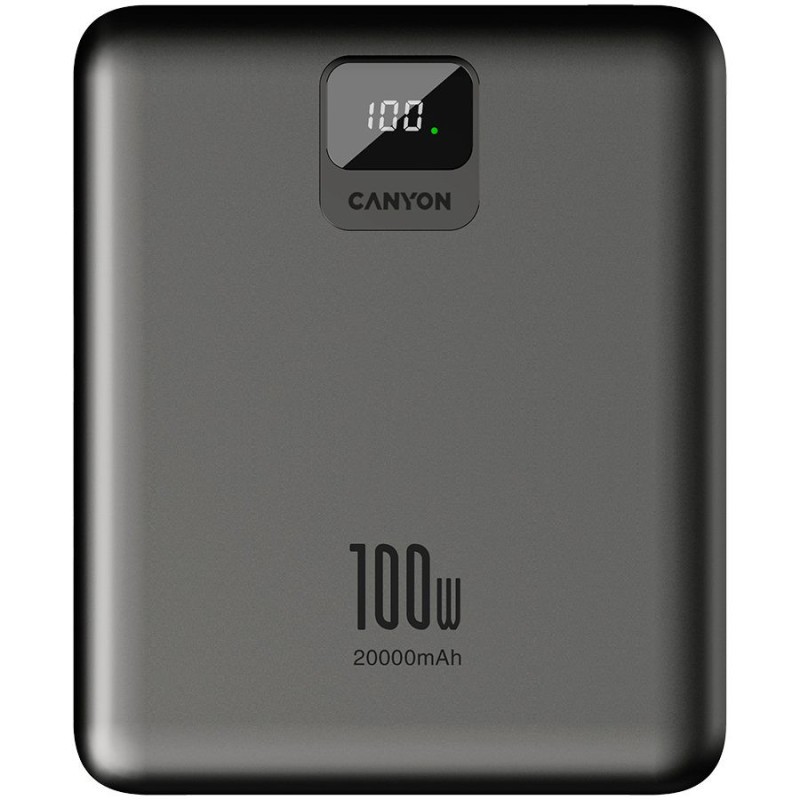 CANYON išorinė baterija PB-2008 LED FLAT 20000 mAh PD100W QC3.0 tamsiai pilka