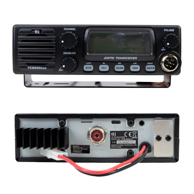 CB TTi TCB-900 EVO radijo stotelė, 12 V 24 V, skenavimas, SQ, DSS, dvigubas stebėjimas, mikrofono stiprinimas, „Bluetooth“ adapterio jungtis