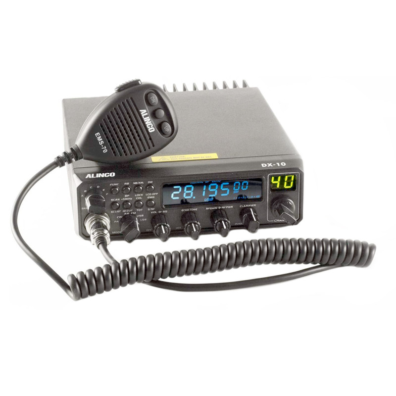Mėgėjiško radijo stotis ALINCO DX-10, AM, FM, SSB 10M 11M CW TRX, iš gamyklos tiekiama 28–29,7 MHz dažniu.