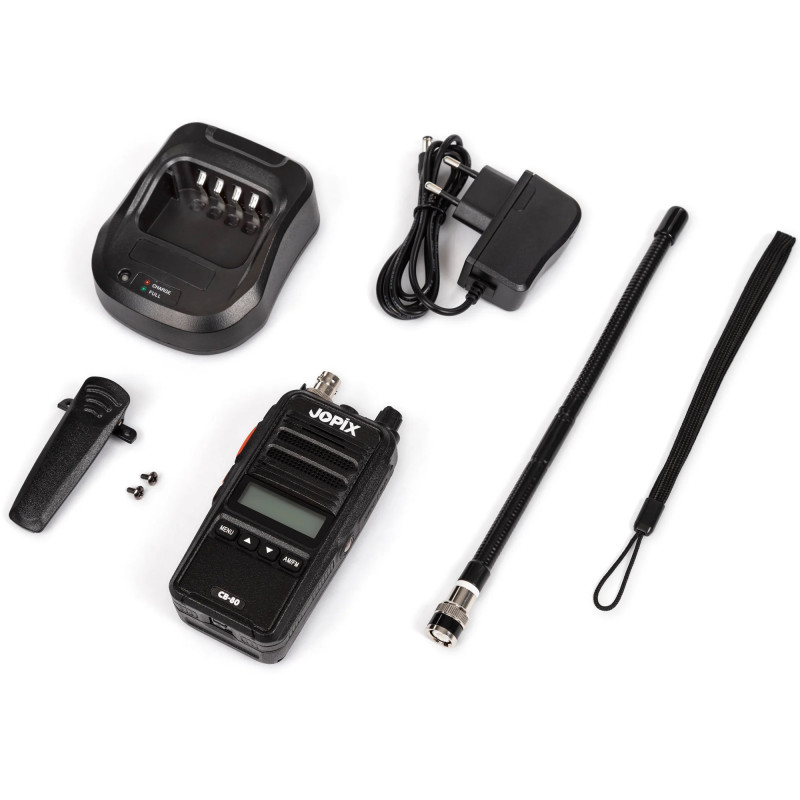 Nešiojama radijo stotelė CB JOPIX CB-80 AM/FM, ASQ, 40 kanalų, 4W, 2600 mAh ličio jonų, juoda