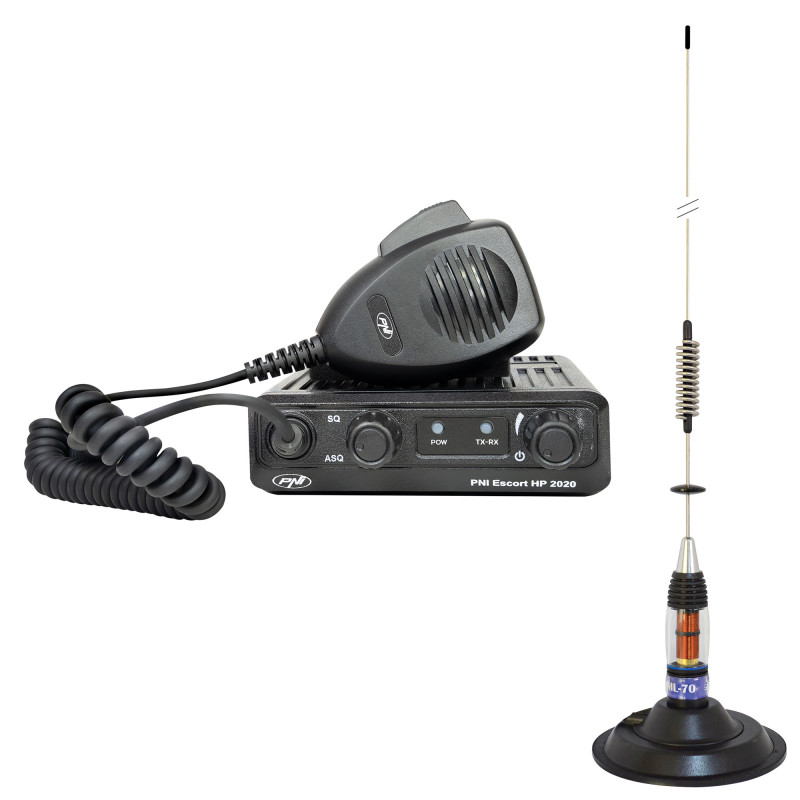 CB radijas PNI Escort HP 2020, 22 kanalas, 4W, 12V ir CB antena PNI ML70, 70cm, 200W su magnetu