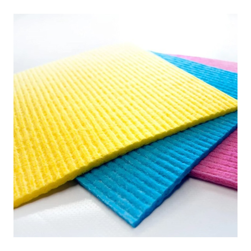 Efektyviam valymui skirta celuliozės ir medvilnės šluostė. Pakuotėje yra trys geltonos šluostės.