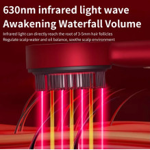 infraraudonųjų spindulių šviesa, kurios ilgis yra 630 nm, stimuliuoja plaukų folikulus, pagerina kraujo tiekimą galvos odai ir reguliuoja riebalų gamybą. Sveikesnė galvos oda, mažiau plaukų slinkimo ir blizgesnių sruogų.
