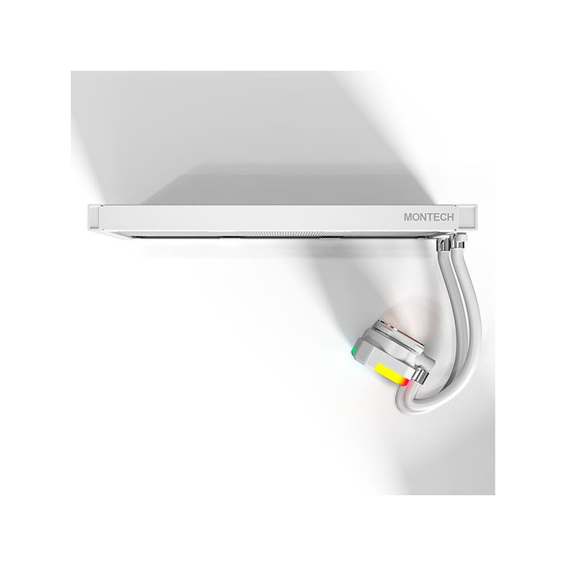 | Santrauka | „Montech HYPERFLOW ARGB 360“. Tipas: Viskas viename skysčio aušintuvas, Ventiliatoriaus skersmuo: 12 cm, Oro srautas: 129,5 m³/h, Maksimalus oro slėgis: 3,81 mmH2O, Guolio tipas: Skysčio dinaminis guolis (FDB). Produkto spalva: Balta |