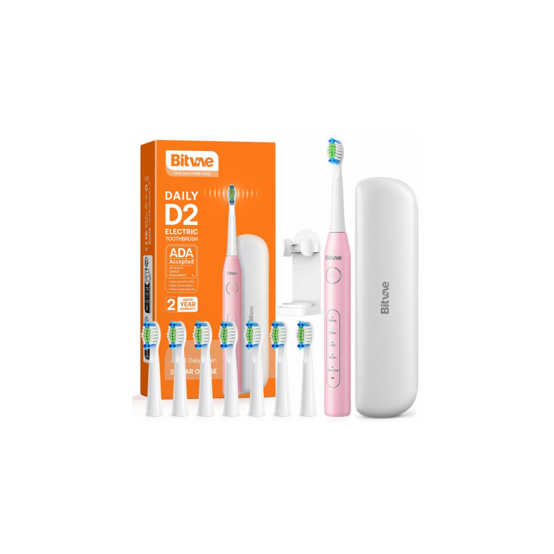 Bitvae D2 elektrinis dantų šepetėlis x8 / kelioninis dėklas / laikiklis / laidas, rožinis