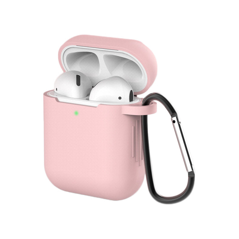 „AirPods 2“ dėklas / „AirPods 1“ silikoninis minkštas dėklas ausinėms + raktų pakabukas, karabinas, pakabukas rožinis (dėklas D)