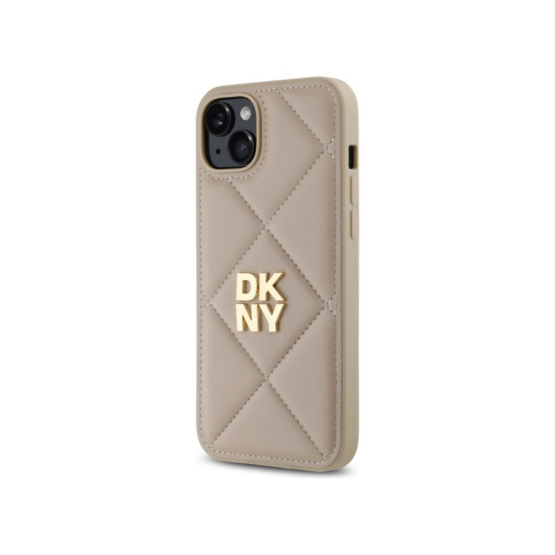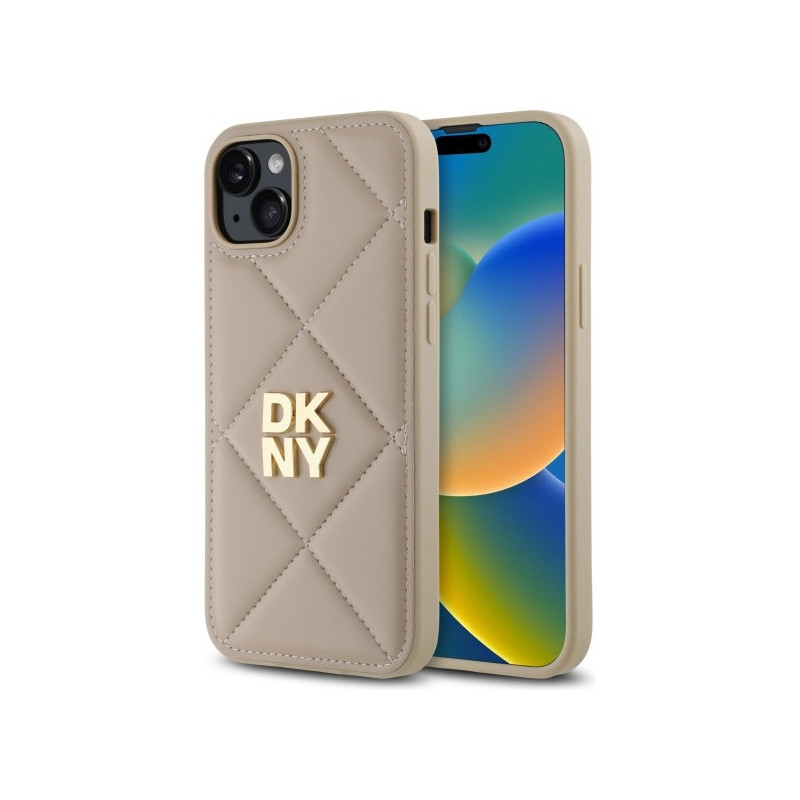 DKNY Quilted Stack Logo iPhone 15 Plus dėklas – smėlio spalvos