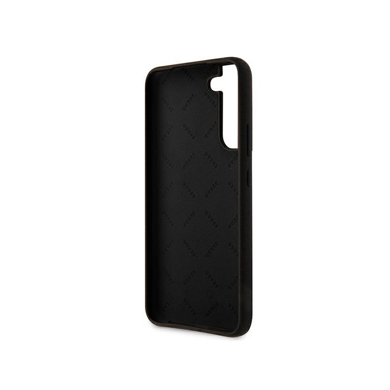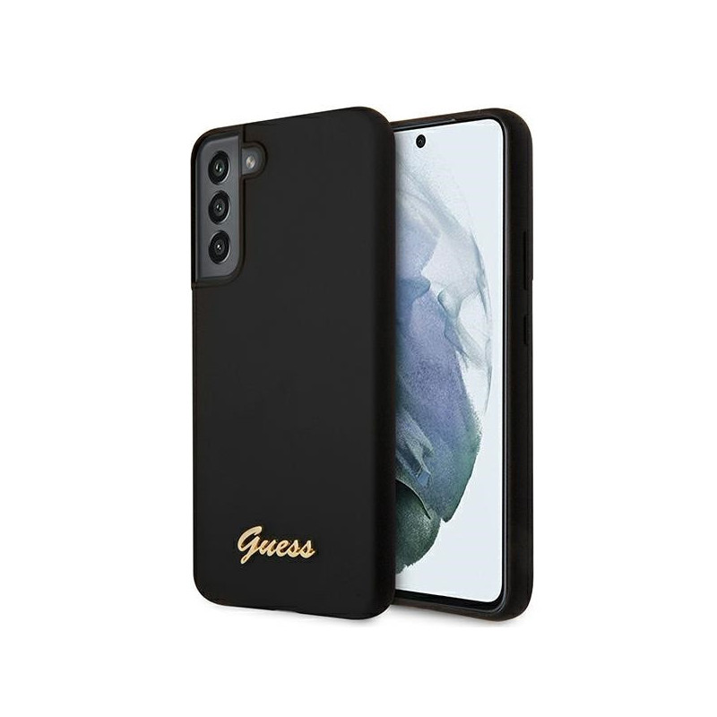 „Guess“ silikoninis metalinis „Script“ logotipo dėklas, skirtas „Samsung Galaxy S22+“ – juodas