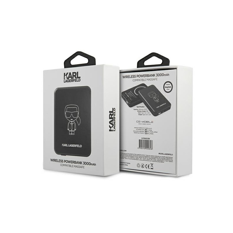Karl Lagerfeld 3000mAh indukcinė išorinė baterija su „MagSafe“ technologija – juoda
