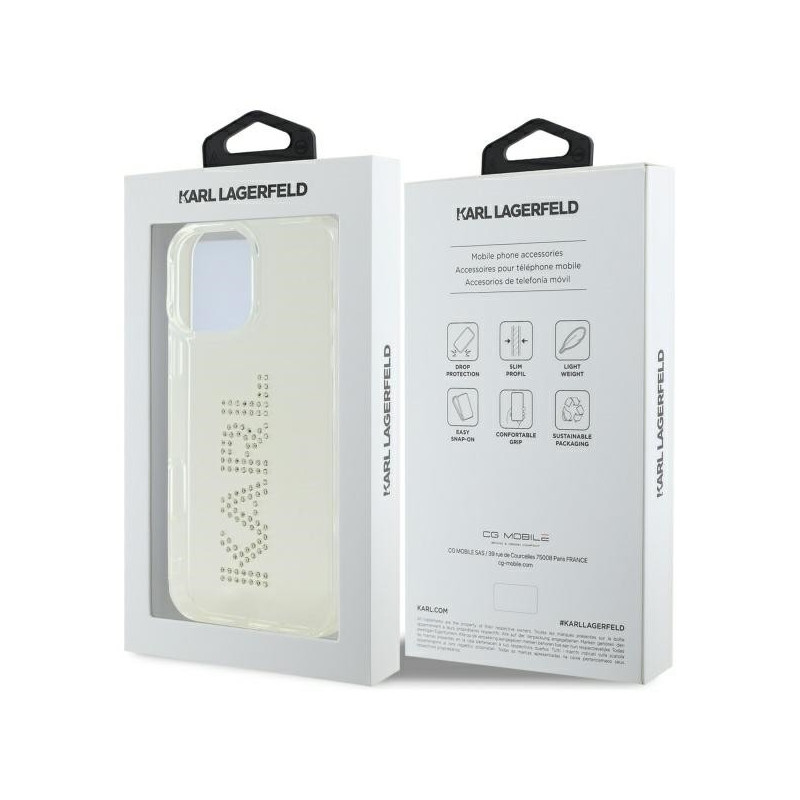 Karl Lagerfeld KLHCP16XHKLSTDCT iPhone 16 Pro Max 6,9 colio skaidraus kieto dėklo IML cirkonio logotipas