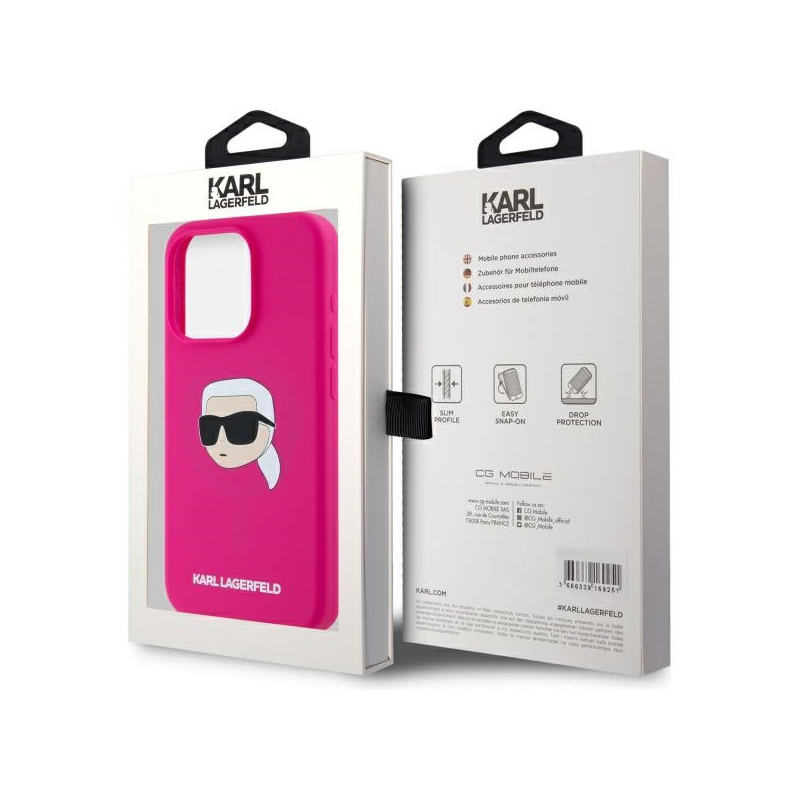 Karl Lagerfeld KLHMP15LSKHPPPLF iPhone 15 Pro 6.1' fuksijos/fuschia kietas dėklas Silikoninis Karl Head Print MagSafe