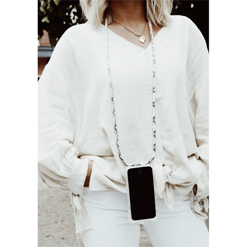 „Lookabe“ „iPhone“ vėrinys laisvina jūsų rankas ir mintis. Šis stilingas aksesuaras leidžia nešiotis išmanųjį telefoną ant kaklo arba per krūtinę. Jis atsparus vandeniui, dulkėms ir nešvarumams. Elegantiški žalvario elementai užbaigia minimalistinį, tačiau galingą vėrinio dizainą.