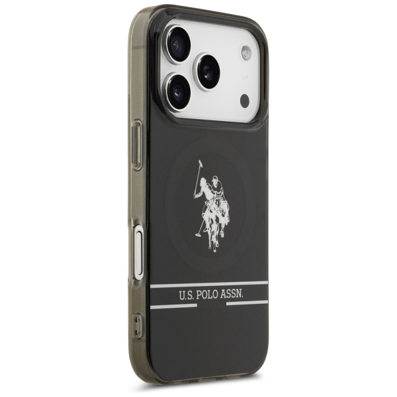 „MagSafe“ dėklas su JAV polo marškinėliais ir apatine juostele, skirtas „iPhone 17 Pro“ – juodas