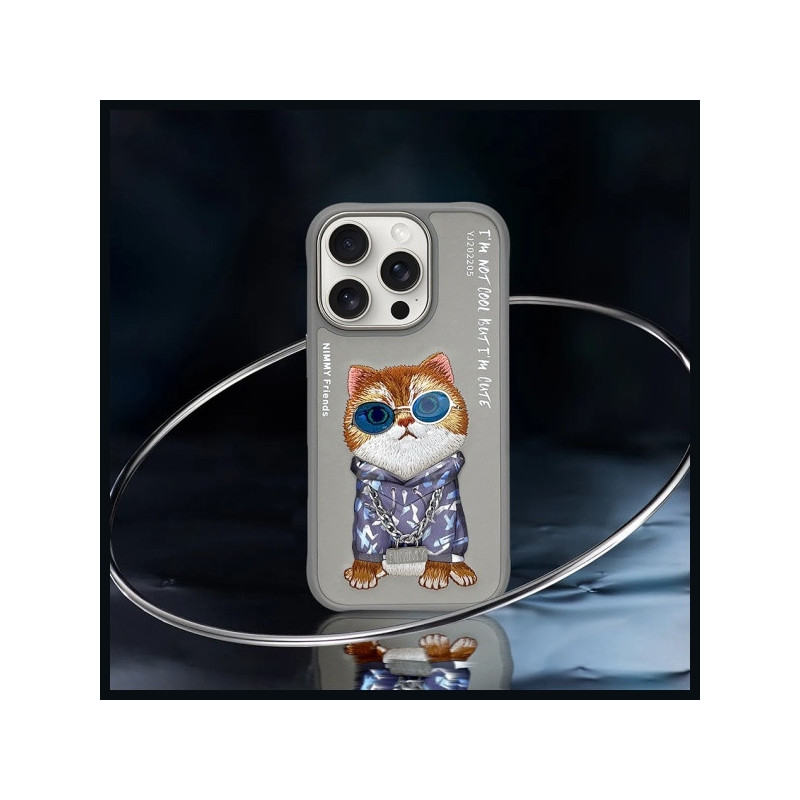 „Nimmy Glasses“ stilingas katino formos dėklas, skirtas „iPhone 16 Pro“ – pilkas