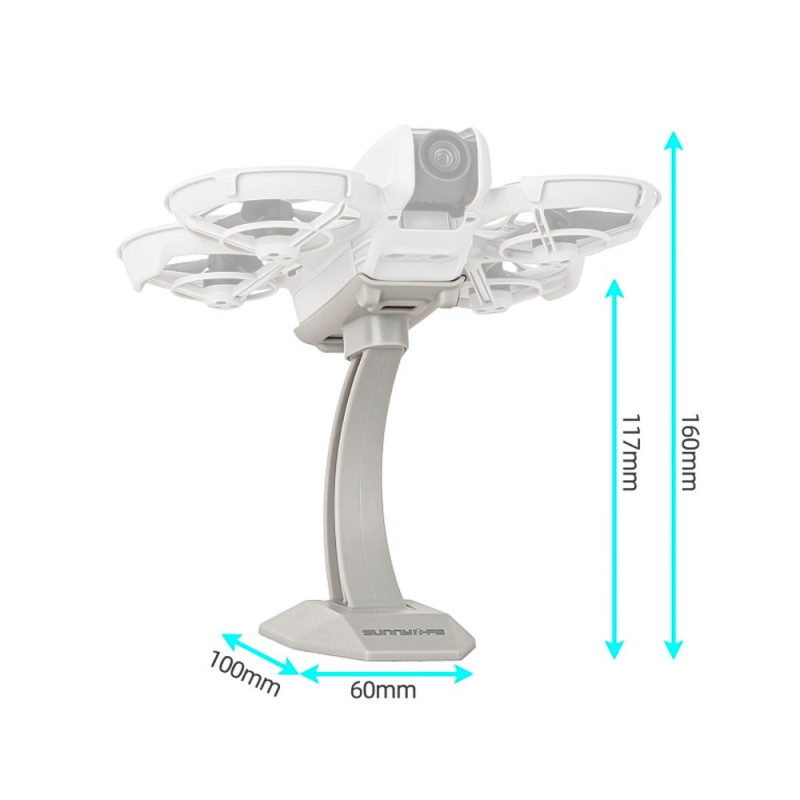 Sunnylife NE-ZJ866 yra stabilus ir saugus stovas, skirtas DJI Neo dronui, pagamintas iš tvirto ABS plastiko. Jo matmenys yra 100 x 60 x 117 mm, o svoris - 32 g, užtikrinantis žemą svorio centrą.