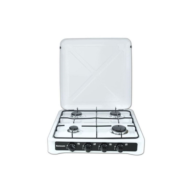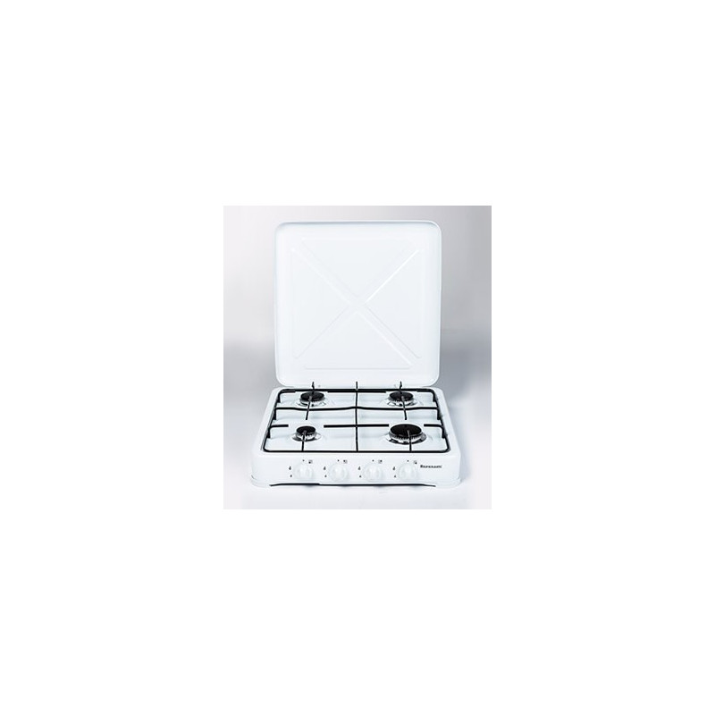 Stalo viryklė dujinė Ravanson K-04T turi keturias dujines virimo zonas ir juodą metalinę bei plastikine konstrukciją. Ji turi sukamojo tipo valdymą, plotis 495 mm, o svoris 5.7 kg.