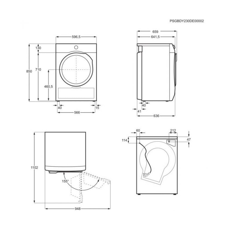 • Šilumos siurblio technologija pasiekia nepralenkiamą energijos efektyvumą • Džiovinimo jutiklis: džiovyklė nustato, kada drabužiai yra išdžiūvę iki nurodyto lygio • Papildomos reguliuojamo laiko džiovinimo programos • Atidėto įsijungimo galimybė • Džiovinimo būsenos indikacija: Nuo susiraukšlėjimo/pabaiga, Vėsinimas, Tinkami kabinti į spintą, Džiovinimas, Itin sausi, Tinkami lyginti • Indikacijos: Kondensorius, Filtras, Rezervuaras • Vidinė lemputė optimaliam džiovyklės vidaus matomumui • Kondensato indo vieta ir talpa: kairėje (pagamintas iš perdirbto plastiko), 5.56 l • Variklio su inverteriu technologija • Kojelės: 4 reguliuojamos • Durų vyris: Dešinėje, keičiamas.