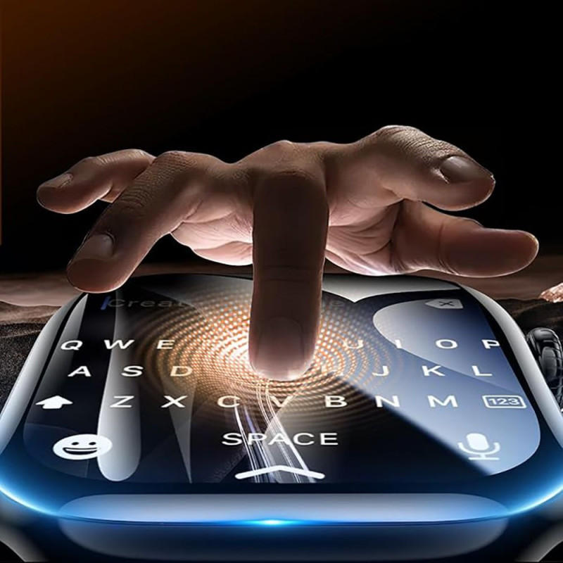 Itin plonas dizainas praktiškai išnyksta laikrodžio ekrane. 7H kietumo keraminė danga efektyviai apsaugo nuo įbrėžimų, atsirandančių kasdien liečiantis su paviršiais. Didžiausias hibridinio stiklo privalumas yra jo lankstumas – skirtingai nei tradicinis grūdintas stiklas, medžiaga sugeria smūgio energiją nesutrūkinėdama ir nesubyrėdama. Tai reiškia ilgalaikę apsaugą be staigios žalos rizikos.