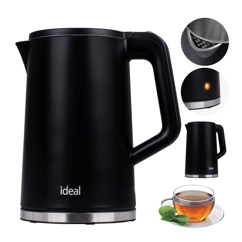 IDEAL virdulys 1,7 l, plieninis korpusas, galia 1500 W, juodas