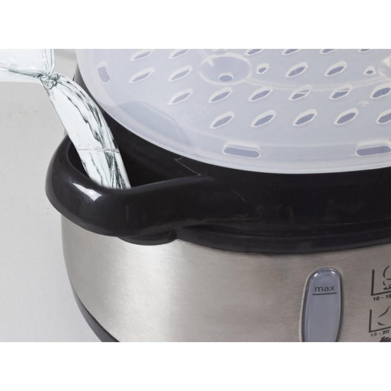 Garpuodis su plienine konstrukcija ir 3 dubenėliais, pagamintais iš skaidraus plastiko be BPA, kurio bendra talpa – 9 l. 1 l talpos bakas su vandens lygio indikatoriumi ir galimybe papildyti vandenį net gaminimo metu. Skysčių surinkimo padėklas su rankenomis. Darbinė lemputė ir rankenėlė su 60 minučių laikmačiu. Automatinis išsijungimas pasibaigus vandeniui. Pridedamas ryžių virimo indas. Lengva valyti ir laikyti dėl vietos taupančių dubenėlių.