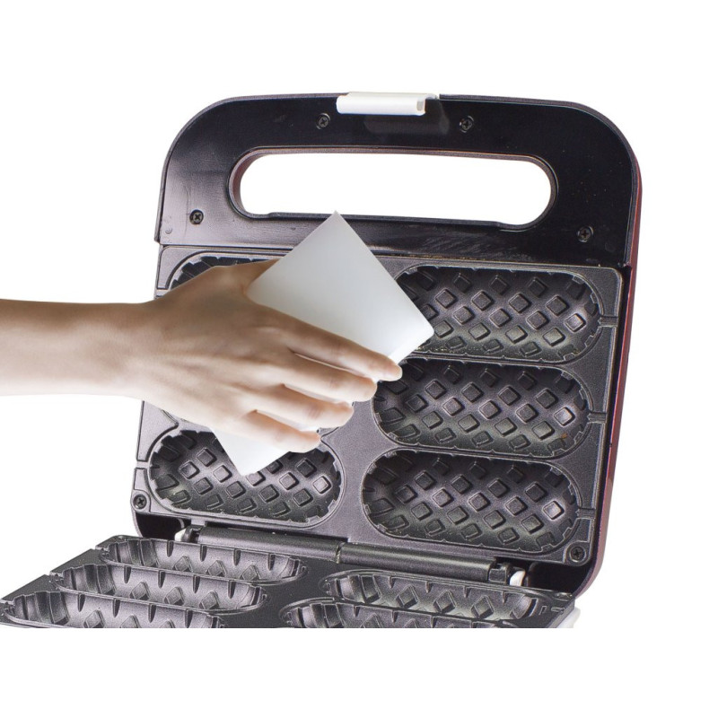 Vaflių keptuvė su nepridegančia plokšte ir neįkaistančia rankena, kuria vienu metu galima iškepti iki 6 vaflių. Galimybė įdėti lazdeles kepimo metu arba po jo, kad lazdelių vafliai būtų paruošti naudoti ar papuošti neplaunant rankų. Įrengta veikimo ir parengties lemputėmis. Su stabiliomis neslystančiomis kojelėmis ir maitinimo laido vyniotuvu. Po naudojimo laikyti vertikaliai.