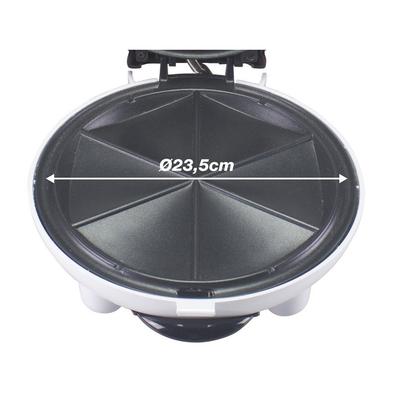 23,5 cm skersmens ir unikalaus dizaino kepsninė, skirta gardiems aperityvams gaminti. Lengvai ir greitai, maždaug per 6–8 minutes, paruošite kesadiljas, panzerotti, saldžius ir pikantiškus įdarytus koldūnus. Nepridegančios plokštelės yra iš anksto suformuotos, kad būtų galima pagaminti tobulas porcijas. Įrengtas skylutė riebalams nutekėti, kurie bus pernešami į specialų išimamą padėklą, kad būtų lengva valyti. Termoizoliacinė rankena saugiam naudojimui, neslystančios kojelės ir laido ritės pagrindas.
