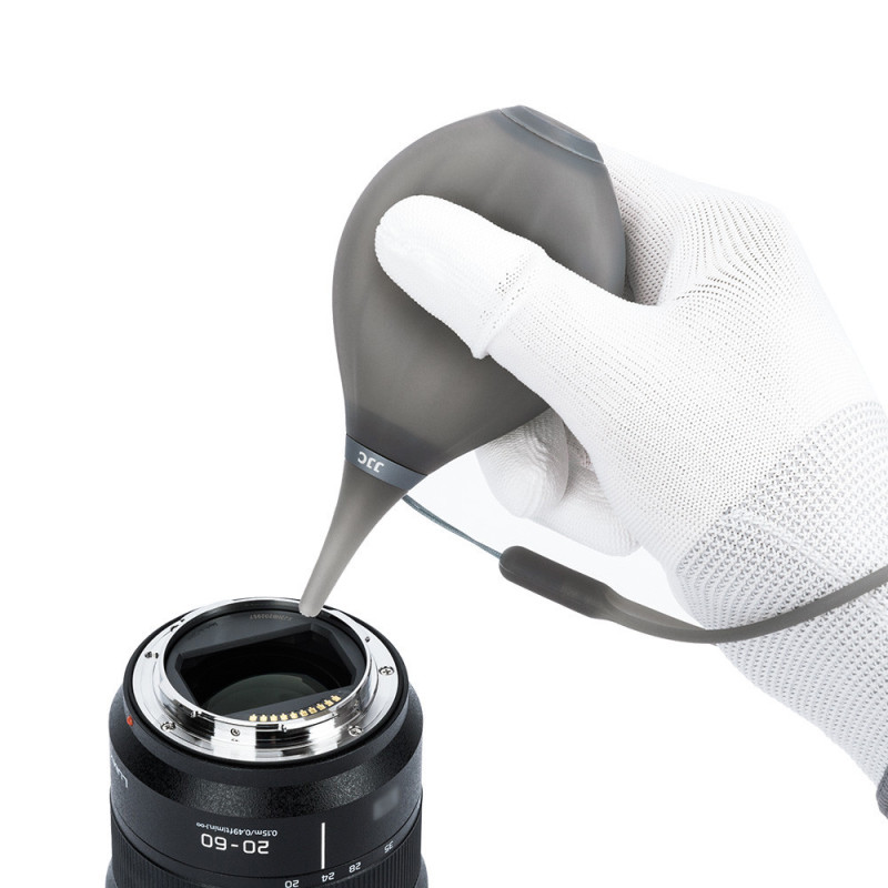 The JJC CL ARSW Lens Air Blower Black is designed to safely blow clean air to remove dust from sensitive surfaces such as cameras, lenses, and keyboards. Made of eco-friendly silicone, it features a scratch-resistant nozzle and two one-way valves for effective dust removal.