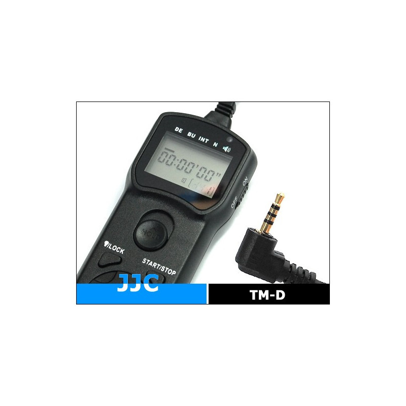 The JJC TM D Wired Timer Remote Controller provides precise control of camera functions such as self-timer, bulb mode and interval timer with customizable settings for up to 99 hours. The device operates on 2 AAA batteries and has a 90cm cable for convenient use with compatible Panasonic cameras.