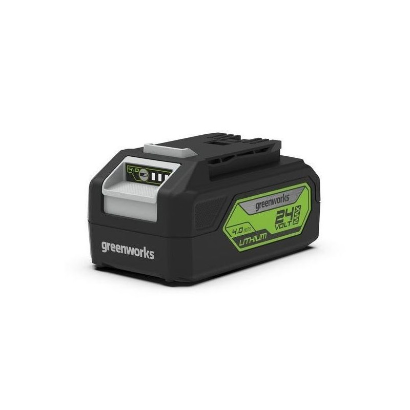 The Greenworks 24V 4Ah G24B4 battery is a lithium-ion battery with a voltage of 24V and a capacity of 4Ah. Weighing 900g, it is perfect for compatible Greenworks tools.